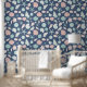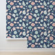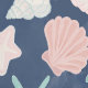 verschiedene Arten von handgemalten Muscheln auf blauem Hintergrund