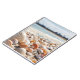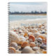 Lass deine Gedanken zu treiben, wenn du über den Strand nachdenkst und Muscheln sammelt. Viele Muscheln im Sand entlang der Küste. Knuspriges blaues Wasser und eine Baumreihe auf der anderen Seite des Sees.