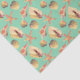 Linda Baysinger die Muscheln Pecks entwerfen, mit Königintritonshorn-Muscheln, Starfish, Kamm-Muscheln und mehr auf Aquahintergrund.
