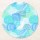 Dieser Untersetzer wird in einer Muscheln am Strand angezeigt. Rundform Farbe Blau/Grün Passen Sie dieses Objekt an oder kaufen Sie, wie es ist. Wählen Sie aus verschiedenen Formen.