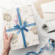 Mit diesem atemberaubenden Verpackungspapier, das ein spielerisches Muster aus Muscheln, Seestern und lustigen, am Strand inspiriert Texten enthält, verleihen Sie Ihrem Geschenk einen Küstenstreifen. Die goldbraunen Farbtöne auf einem optionalen Sandsteinhintergrund erinnern an einen entspannten Sommer mit Strandhaus-Ambiente. Dieses Design wird jedem Geschenk Wärme und Charakter verleihen. Suchen Sie ID918, um weitere Farboptionen für dieses Design zu sehen.