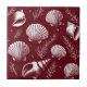 Keramik Kacheln in einem Muster von Muscheln und zarten Algenmustern, die auf einem tiefmaroonroten Hintergrund angeordnet sind, schaffen einen auffallenden Kontrast. Die detaillierte Linienarbeit verleiht der Komposition ein faszinierendes und naturalistisches Gefühl.