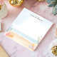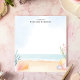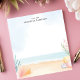 Entfliehen Sie mit diesem beruhigenden, personalisierten Notizblock ans Ufer. Eine ruhige Strandlandschaft mit Sand, sanften Wellen, Muscheln und einer subtilen Vegetation schmückt den Boden. Die sanften Pastelltöne verleihen dem Ganzen ein Gefühl der Ruhe. Passen Sie dieses Notizblock mit Ihrem eigenen Text für eine persönliche Touch an. Ideal, um Ferien, Strandhütten oder Erinnerungen im Alltag zu verbringen.