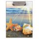 Muscheln und Seestern am Strand Klemmbrett