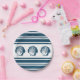 Schönes Design mit blauen Muscheln und weißen Streifen auf weißem Hintergrund