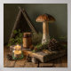 Earthy, curious, handcrafted: mushroom caps and dried herbs arranged like a tiny cabinet of wonder.