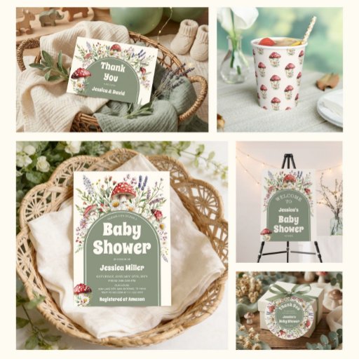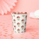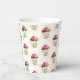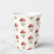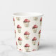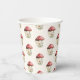 Mushroom Baby Shower paper cups featuring whimsical watercolor toadstool mushrooms, wildflowers, lavender, and leafy greenery with an earthy sage center. Cute tablewear and party decorations for a forest mushrooms themed baby shower, perfect for a Whimsical, cute, Earthy Baby Shower aesthetic.