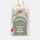 Mushroom Baby Shower Thank You Favor Gift Tags featuring whimsical watercolor toadstool mushrooms, wildflowers, lavender, and greenery with an earthy sage arch design. These thank you tags are perfect for tying onto baby shower favors, treat bags, mini jars, candles, or gift boxes for a forest mushrooms themed baby shower. A whimsical, cute, Earthy Baby Shower detail that coordinates beautifully with woodland/boho rustic baby shower decor. Personalized text (name, event, date) for a cohesive matching look.
