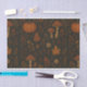Zauberhaftes, dunkles Aquarellpapier mit Pilzen, Blumensprays, Ahorn-Blätter und Eicheln im Retro-Waldmuster. Ideal für Herbstdecoupage, Halloween-Kunsthandwerk, Erntedank-Umhüllung und Waldprojekte.
