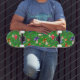 Helle Regenbogenstühle auf einem lebhaften grünen Hintergrund