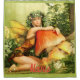 Blaue mit Augen Blonde Fee umarmt einen großen amanita Pilz, um mit Ihrem eigenen Gruß, Namen, Nachricht etc.