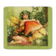 Blaue mit Augen Blonde Fee umarmt einen großen amanita Pilz, um mit Ihrem eigenen Gruß, Namen, Nachricht etc.