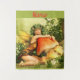 Blaue mit Augen Blonde Fee umarmt einen großen amanita Pilz, um mit Ihrem eigenen Gruß, Namen, Nachricht etc.