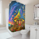 Dieser Duschvorhang hat ein buntes Pilzhaus.
