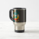 Ein Reisetug mit einer 8. Noten Musik, wobei sich der Satz "Break from the Grind" um das Bild dreht. Das Design lässt den Alltagsstress durch den Power von Musik und Rhythmus friedlich entgehen.