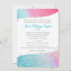 Helle Farbtöne von rosa und türkisblau Aquarellfarben mit silbernen Musiknoten und Star of David, Bat Mitzvah Einladung. Personalisieren Sie Text wie gewünscht.