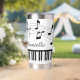 Modern, personalized music-themed tumbler featuring a piano keyboard and music notes with a name, monogram or custom text in your choice of colors and font styles (shown in black and white). Ideal for music teachers, musicians and music professionals. ASSISTANCE: For help with design modification, contact the designer BEFORE ORDERING via the Zazzle Chat MESSAGE tab below or email makeitaboutyoustore@gmail.com.