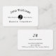 Black and white professional card with basic information only... curved name with custom occupation (music teacher) and inspirational quote 'when words fail, music speaks'... address, email and phone at the back...