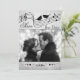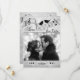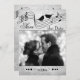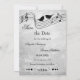 Eine romantische Save the Date-Karte mit Ihrem eigenen Lieblings-Foto, gerahmt von einem musikalischen Design in Schwarz und Weiß mit musikalischen Noten und Gesang Liebesvögel auf einem Spitzen-Grunge-Hintergrund.