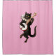 Musikalische Katze, die ein Banjo auf pastellrosa Hintergrund spielt.