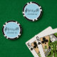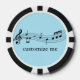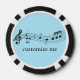 Cool custom music teacher poker chips featuring a musical staff with notes on a blue background. Order this personalized gift for a musician, composer, band or orchestra conductor, or choir director and customize with a name or other text.