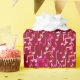 Eine Kaskade von musikalischen Noten in Fuchsienrosa, blassrosa, beige und creme auf einem tiefburgundischen Weinhintergrund