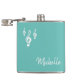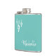 Trendy musical flask, mit einem dreifarbigen clef muster und weißer skripttypografie. Set auf einem aquamarinen grünen Hintergrund, dieses Element hat anpassbare Buchstaben, wo Sie Ihren eigenen Text hinzufügen können. Ein unterhaltsamer Musikgegenstand, der zum Feiern im Stil inspiriert wurde.