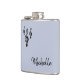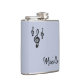 Trendy musical flask mit dreifarbigem clef muster und schwarzer skripttypografie. Set auf einem lila Hintergrund, dieses Element hat anpassbare Buchstaben, wo Sie Ihren eigenen Text hinzufügen können. Ein unterhaltsamer Musikgegenstand, der zum Feiern im Stil inspiriert wurde.