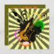 Goldene Gitarre, Wirbel, Kreise und Tinte splats auf einem Sonnendurchbruchhintergrund--angesagt und funky. Füllen Sie einfach die Schablone und das voila aus-- Sie haben eine Designergeburtstags-Party Einladung