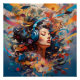 Ein abstraktes digitales Bild einer Frau, die Musik hört, die sie umgibt.