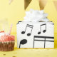 Musikalische Noten auf einem Personal. Um noch mehr Spaß zu haben, lassen Sie den Empfänger die Melodie spielen, bevor Sie das Geschenk öffnen!
