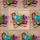 Musik-Graffiti-Wanddruck auf Gewebe. Dieses ist der gleiche Hintergrund, der in den Tanzencharakteren mit Musik-Graffitiwand-Hintergrundgewebe benutzt wird.