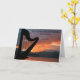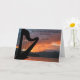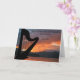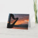 Grußkarte mit Sonnenuntergang und eine Silhouette einer Harfe mit den Wörtern vom Lao Tzu, Musik im Soul können durch das Universum gehört werden.