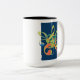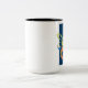 Zwei-Töne-Kaffee-Tasse für Musikliebhaber und Musiker in Ihrem Leben. Die Grafik besteht aus ineinander greifenden Dreifach-Clefs (die hohen Noten) und Bass-Clefs (die niedrigen Noten). Passen Sie diese Tasse an, indem Sie den Namen des Musikliebhabers oder ein Zitat eines berühmten Musikers hinzufügen.