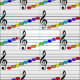 Musik, Noten, Regenbogen mehrfarbig. fröhliches niedliches Weiß