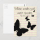 Eine schöne und einfache Postkarte mit Notenhintergrund mit Schmetterlingskarte mit Silhouetten. Zitat von Hans Christlich Andersen lautet: "Wo Wörter versagt werden, spricht Musik."