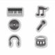 Musik-Sticker mit folgenden Designs: Kopfhörer, Vinyl-Schallplatte, Tastatur, Mikrofon, Trommel und Noten.