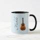 Musikalisches Instrument nach Maß akustische Gitarre, mit blauem Hintergrund und Gitarrenbild. Schwarze Schriften können mit Ihrem eigenen Text personalisiert werden. Ein lustiges Geschenk für Musikliebhaber oder Musiker in Ihrem Leben