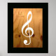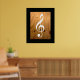 Eine coole Idee, eine Zimmerwand für einen Musiker zu dekorieren. Das Bild einer weißen, grafischen Note (dreifach-weiß) auf einem hölzernen Hintergrund mit individuelle Name und einem schwarzen Rahmen