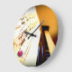 Musikalische Lebenszeiten legt diesen großen runden Wanduhrentwurf vor, der ursprüngliche Cellophotographie und das einzigartige musikalische Lebenszeitlogo kennzeichnet. Ein ideales Geschenk für irgendeinen Musikfreund und Pianisten.