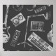 Vintage Musikproduktion nahtlos. Lautsprecher, Laptop, Kopfhörer, Mikrofon, Verstärker, Platte, Synthesizer, elektrische Gitarre. Musikproduktionskunst im Retrofluss. Groove mit den Klassikern neu. Wiederbeleben Sie die Musikszene mit einem Vintagen Instrumentarium- und Gangmuster: Musik, Muster, Produktion, nahtlos, dj, Vintag, Illustration, Klavier, Gitarre, Symbol, Mikrofon, Tastatur, Ton, Schallplatte, Ausstattung, Hintergrund, Silhouette, Verstärker, Audio, Grunge
