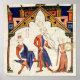 Musiker der Portugiesischen Schule Fol.6r, die eine Viola und Tambourine spielen, von der 'Chansonnier des Nobles' in der Biblioteca del Palacio Nacional de Ajuda, Lissabon, Portugal. Die Fol.6r Musiker, die Viola und Tambourine spielen, aus der 'Chansonnier des Nobles', wurden um das 13. Jahrhundert kreiert.