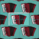 Niedlicher Akkordeonstoff ist ideal für ein DIY-Projekt für Musikliebhaber, Musiker oder Akkordeonliebhaber! Ideal zum Nähen von Quilting und Crafting Projekten! Großartig mit aquamarinem Hintergrund.