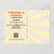 Eine einzigartige Hochzeit speichern Sie das Datum Postcard mit einem hellen Begrüßungseffekt mit einem sommerlichen Musik Festival-Gefühl, Ihr Foto auf einem Retro-Vinyl-Album-Cover. Der Hintergrund ist ein heller Sonnenbrand in sommerlich rosa und gelben Farben, der mit dem Text auf der Albumabdeckung und dem Plattenlabel abstimmt, das Ihre Namen, Veranstaltungsdatum und Position enthält. Die Rückseite der Postkarte weist den gleichen Berst wie ein Hintergrund auf und hat Platz für zusätzliche Nachrichten über Ihr großes Datum, einschließlich einer Hochzeitswebsite QR. Vintage 60er-, 70er-, 80er-Musikfans. 12-Zoll-LP-Look. Lassen Sie Ihre Gäste tanzen in die musikalische Groove Ihrer Hochzeit! Der gesamte Text wird von Ihnen personalisiert. Farben können im Design-Tool angepasst werden. Die Farbe der Aufnahme ist schwarz.