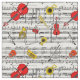 Wiederholtes Muster der Musikinstrumente auf Kerbehintergrund der klassischen Musik (Deutsche Tanze und 7 Trios durch Franz Schubert). Instrumente schließen gegen Baß, Flöte, Saxophon, Trompete, Trombone, Violine, Cello, Tuba, Clarinet, Oboe, französisches Horn, Piccoloflöte und Gitarre ein.