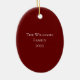 Fröhliche Weihnachtsmusikschmuck, mit einer eleganten roten Typografie und einem Violinbild. Mit anpassbarer Schrift können Sie Ihre eigene Nachricht hinzufügen. Die Rückseite hat einen roten Hintergrund und einen Ort, um Ihre Familieninformationen anzupassen. Ideal, um eine Touch klassischer Musik zu Ihrem Urlaubshaus hinzuzufügen.