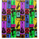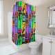 Ein farbenfroher und heller Duschvorhang mit Musikinstrumenten