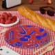 Dieser Entwurf ist eine Mischung der verschiedenen Musikinstrumente in Blauem und im Weiß mit einem roten Hintergrund. Auch verfügbar eine andere Größe und zusammenpassenden Servietten mit dem gleichen Entwurf. Dieses Bild ist auf einer Vielzahl anderer Produkte, klicken gerade die Verbindung unter dem Foto nahe "über diesen Entwurf" verfügbar.