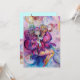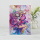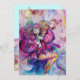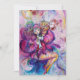 Farbenfrohe, skurrile, lustige, rosa Clownspiele mit einer ausdrucksvollen Eule und fröhlichen musikalischen Noten,Blume,Blätter in lebhaften Rot,Fuchsia,Violett,lila,blau,weiß, Aquarellmalerei von Bulgan Lumini (c)
