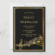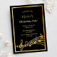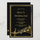 Eine trendige, moderne 50. Geburtstagskarte für Damen und Herren. Klassischer schwarzer Hintergrund mit goldfarbenem Rahmen und Musiknoten aus Imitat, goldfarbenen Buchstaben. Vorlagen für Ihre Party-Informationen. Zurück: Schwarze Imitate Gold Musiknoten.